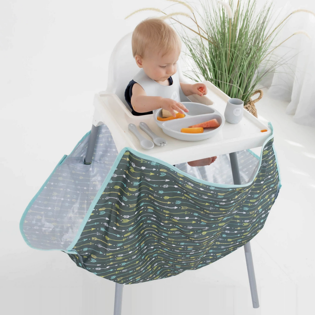 Our award winning High Chair FOOD CATCHER™ is the Ultimate Splat Mat Redefined for Stress-Free Mealtimes! It keeps all the food off the floor - a Game Changer in mess containment. Say goodbye to floor mess and hello to enjoyable family meals.